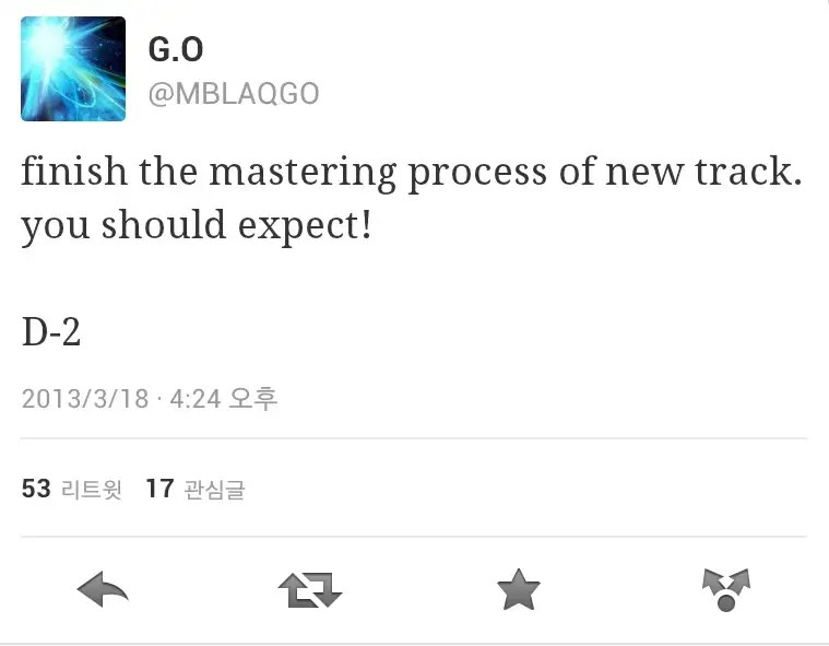 G.O is an extraordinarily accomplished composer and lyricist – although this amazing and humble artist might wave off the compliment. What he cannot deny, however, is the excitement pending the 20 March 2013 release of 바보같 은나 [What A Fool I Am] when in anticipation, he tweeted to his followers two days prior to the release that final mastering of the track had been completed.